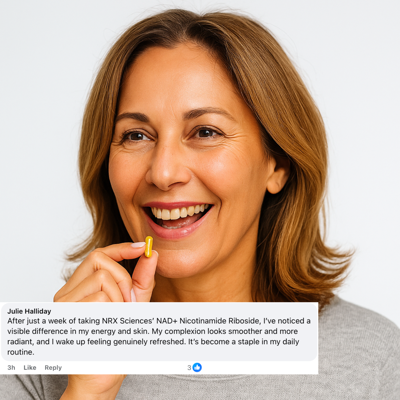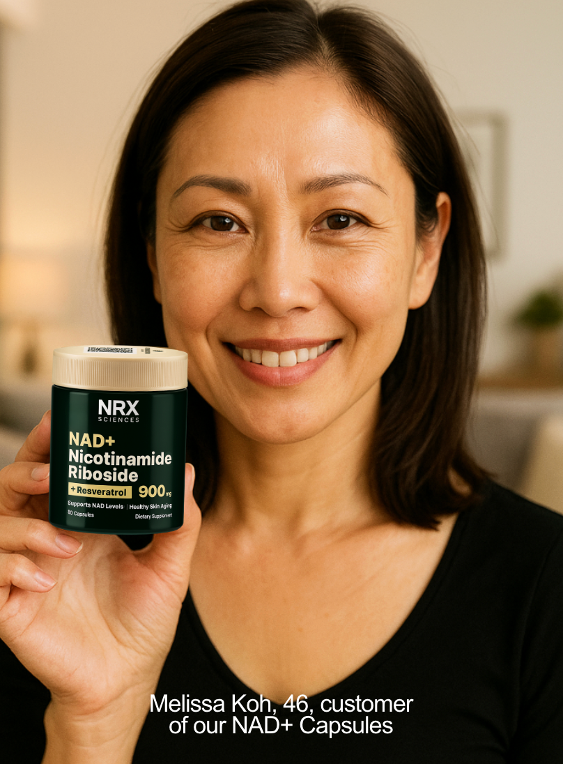 After just 2 weeks of taking NRX Sciences NAD+ Capsules, Melissa started noticing real changes — her wrinkles disappeared, skin felt smoother, energy levels came back, and even her friends began asking what skincare she switched to.